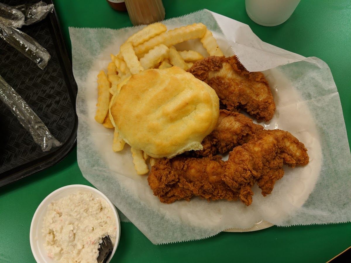 This place has terrific chicken , and the best biscuits around . The breakfast here is the best in town . I had a bacon , egg and cheese biscuit and cheese grits and both were excellent . If you’re in Toccoa this is the place for breakfast , or a fried chicken lunch .